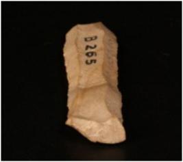 | Description / विवरण | Chert blade with two ridges on the dorsal side, prominent bulb on the ventral side use-ware marks along the cutting edges and trapezoidal in section. |