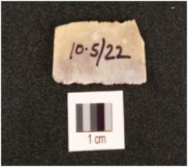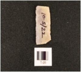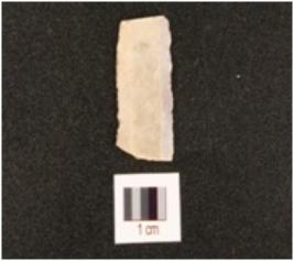 | Description / विवरण | Fragment of parallel sided chert blade with use wear marks on cutting edges and two-ridges on dorsal and trapezoidal in section. |