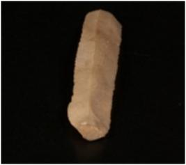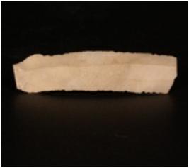 | Description / विवरण | Parallel sided chert blade with a prominent mid ridge on the dorsal side and prominent bulb on the ventral side and use-wear marks along the cutting edges. |