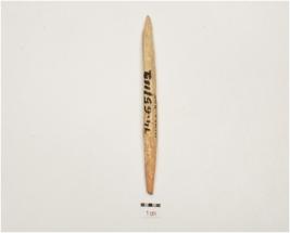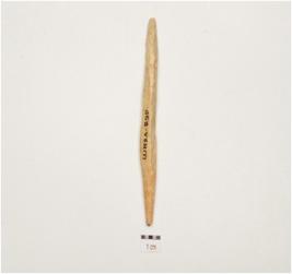 | Description / विवरण | A point made on bone, polished surface, slightly broken pointed end, intact other end and trapezoidal cross section. |