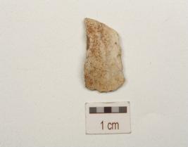 | Description / विवरण | A fragment of scraper made on flake. Bulb absent. Partly retouch cutting edge. Slightly broken end. |