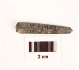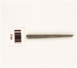 | Description / विवरण | Stone point, both ends broken, circular section, polished surface. |