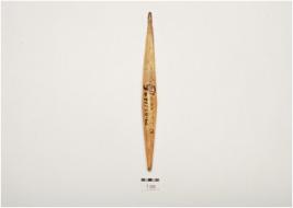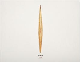 | Description / विवरण | A bone point, facated polished surface, both intact pointed end and irregular circular cross section. |