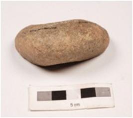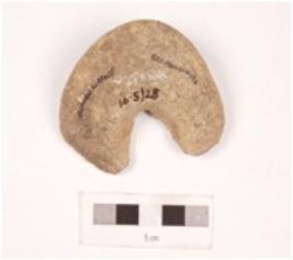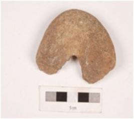 | Description / विवरण | Fragment of a basalt mace-head with rough surface and perforation. |