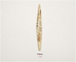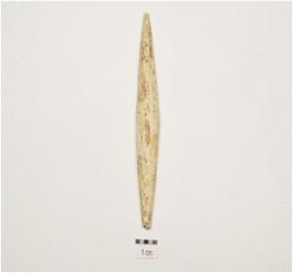 | Description / विवरण | A bone point, facated polished surface, both broken ends and irregular circular cross section. |