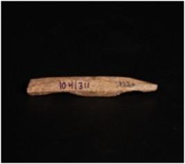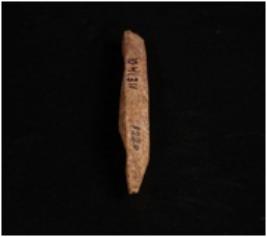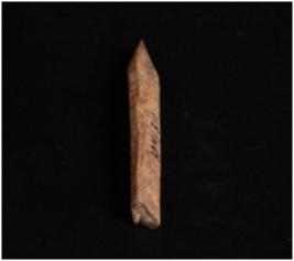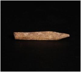 | Description / विवरण | Bone point with ridges on four sides, one side is pointed and broken from another side, rough surface and square in section. |