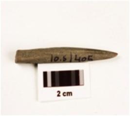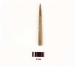 | Description / विवरण | A fragment of soft stone needle with pointed end, slightly broken from pointed end, smooth-polished surface, circular in section, partly broken from one end. |