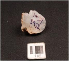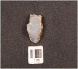 | Description / विवरण | Core, made on chalcedony three flake scars on surface, use wear marks on cutting edge and cortex on surface, diffused bulb on ventral and triangular in section. |