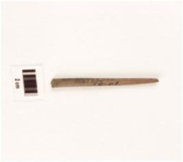 | Description / विवरण | Stone point, both ends broken, circular section, polished surface. |