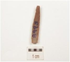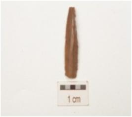 | Description / विवरण | Fragment of a backed blade, made of chert, broken along left lateral edge, diffused bulb on ventral side, irrailure on the bulb suggests indirect technique, use-wear marks along the cutting edge, triangular in section and ridge on dorsal side. |