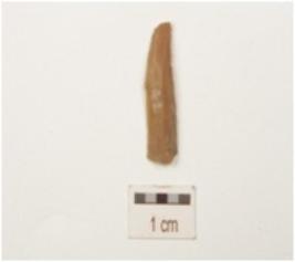 | Description / विवरण | Fragment of a blade, made of chert, bulb absent on ventral, ridge on dorsal side, triangular in section, use-wear marks along the cutting edge and broken along distal end. |