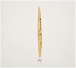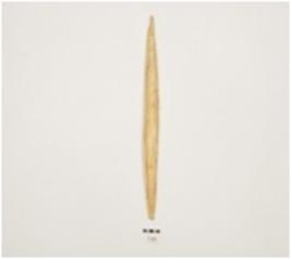 | Description / विवरण | A bone point, facated polished surface, both broken ends and irregular circular cross section. |