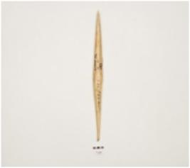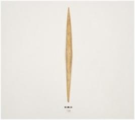 | Description / विवरण | A bone point, facated polished surface, both intact pointed ends and irregular circular cross section. |
