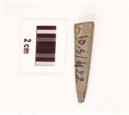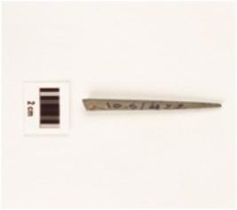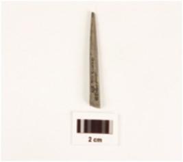 | Description / विवरण | Stone point, half broken, pointed distal end, square section, polished surface. |