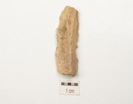 | Description / विवरण | A blade made on chert with a mid ridge, use wear marks along the cutting edges and triangular in cross section. |