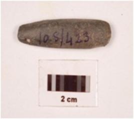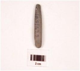 | Description / विवरण | Fragment of pointed arrow head stone, rectangular in section, greyish colour, smooth surface. |
