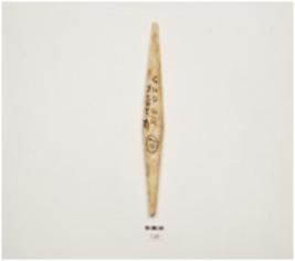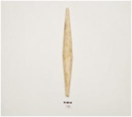 | Description / विवरण | A bone point, facated polished surface, both broken ends and irregular circular cross section. |