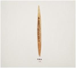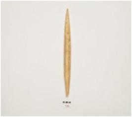 | Description / विवरण | A bone point, facated polished surface, both intact pointed ends and irregular circular cross section. |
