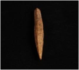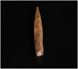 | Description / विवरण | Bone point with ridges on three sides, one is pointed and other side is partly broken. Uneven in shape and flattened from other end with square section. |