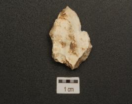| Description / विवरण | A flake made on chert with prominent bulb on ventral side and use wear marks along the cutting edges. |