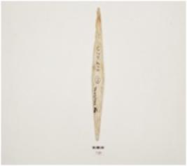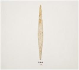 | Description / विवरण | A bone point, facated polished, surface both intact pointed ends and irregular circular cross section. |