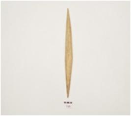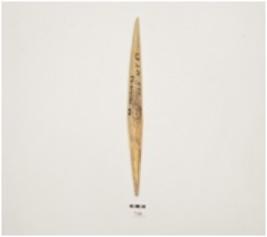| Description / विवरण | A bone point, facated polished surface, both intact pointed end and irregular circular cross section. |
