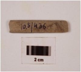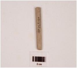 | Description / विवरण | Fragment of pointed arrow head stone, rectangular in section, greyish colour, smooth surface. |