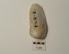 | Description / विवरण | A flake made on quartzite use wear marks along the cutting edges and cortex on surface. |