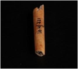 | Description / विवरण | Bone point, long narrow, broken from both ends, smooth and polished surface, brown in colour and circular in section. |
