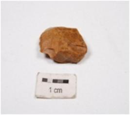 | Description / विवरण | A side scraper made of chert, prominent bulb on ventral prepared platform and regular retouching. |