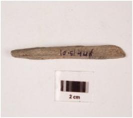 | Description / विवरण | Stone point with rectangular cross section, polished surface and both ends broken. |