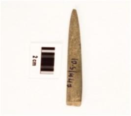 | Description / विवरण | A stone point fragment with broken narrow point, smooth surface, partly broken from both ends. |