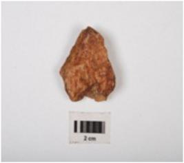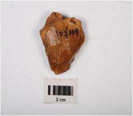 | Description / विवरण | A chert flake with prepared platform, prominent bulb and cortex intact on one surface. |