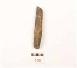 | Description / विवरण | A fragment of point made on bone broken on both end and circular cross smooth surface. |