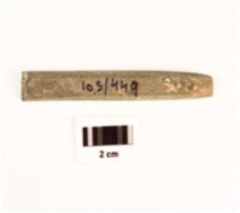 | Description / विवरण | A fragment of stone point with smooth surface, rectangular in shape, partly broken from both end. |