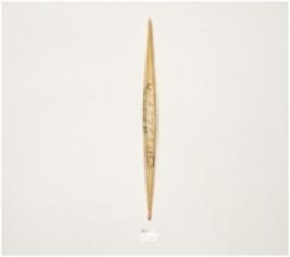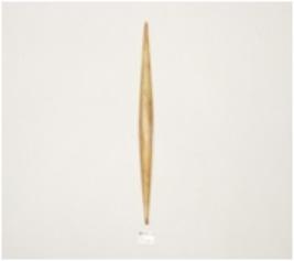 | Description / विवरण | A bone point, facated polished surface, both intact pointed ends and irregular circular cross section. |
