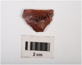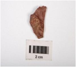 | Description / विवरण | A chert end scraper made on chert flake with use-wear marks along the cutting and prominent bulb. |