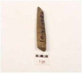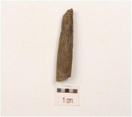 | Description / विवरण | A fragment of point made on charred bone, broken both end, circular cross section and smooth surface. |