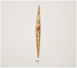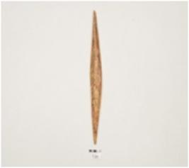 | Description / विवरण | A bone point, facated polished surface, both intact pointed ends and irregular circular cross section. |