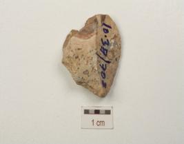 | Description / विवरण | A blade made on chert with flake scars on dorsal surface, trapezoidal in cross section and use wear marks along the cutting edges. |