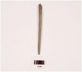 | Description / विवरण | A point made on himalayan soft stone having square section with partly broken sharp point, polished surface and the thick end also broken. |