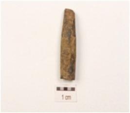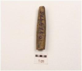 | Description / विवरण | A fragment of point made on bone, broken both end, circular cross section, rough surface and given heat treatment. |