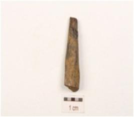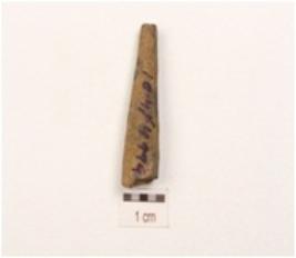 | Description / विवरण | A fragment of point made on bone, broken upper part and, slightly broken tip, flake scars on the surface and circular cross section. |