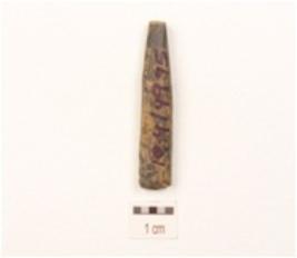 | Description / विवरण | A fragment of point made on bone, slightly broken upper part and tip and rectangular cross section. |