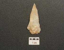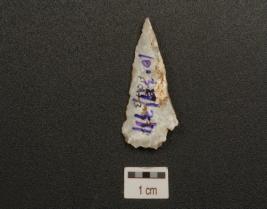 | Description / विवरण | A utilized flake made on chalcedony and use wear mark along the cutting edges. |