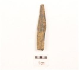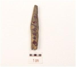 | Description / विवरण | A fragment of point made on bone, broken upper part and missing working edge, square cross section, smooth surface. |