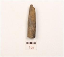 | Description / विवरण | A fragment of point made on bone, broken both end, flake scars on the surface and plano-convex cross section. |