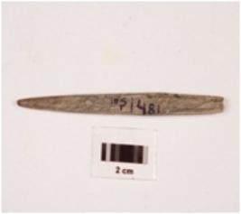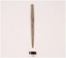 | Description / विवरण | A stone point with circular cross section and polished surface. |