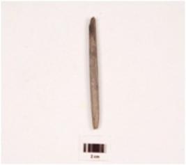 | Description / विवरण | A stone point with circular cross section, polished surface and broken from both ends. |