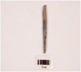 | Description / विवरण | Stone point having semi circular cross section, polished surface and one end broken. |
